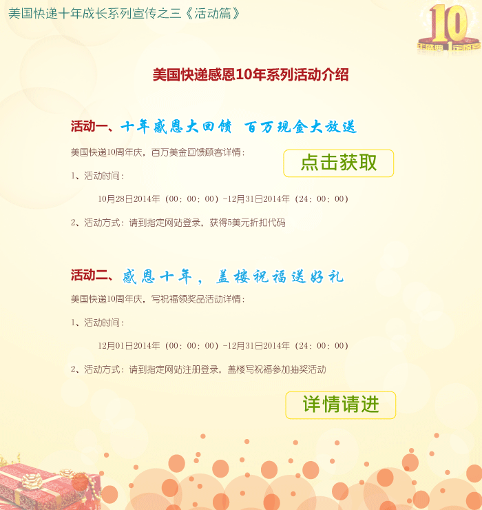 美國(guó)快遞感恩10�,百萬美金大回饋