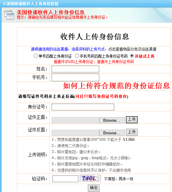對于長期使用美國快遞的收件人,可直接采取這種方式上傳身份資料,一次操�,可重復(fù)使用�